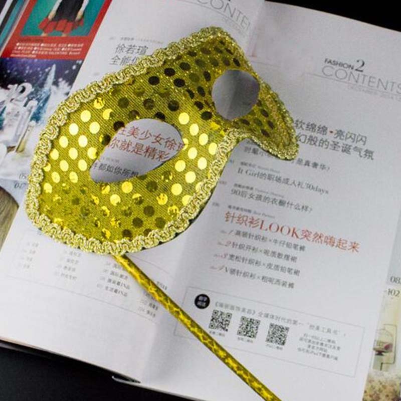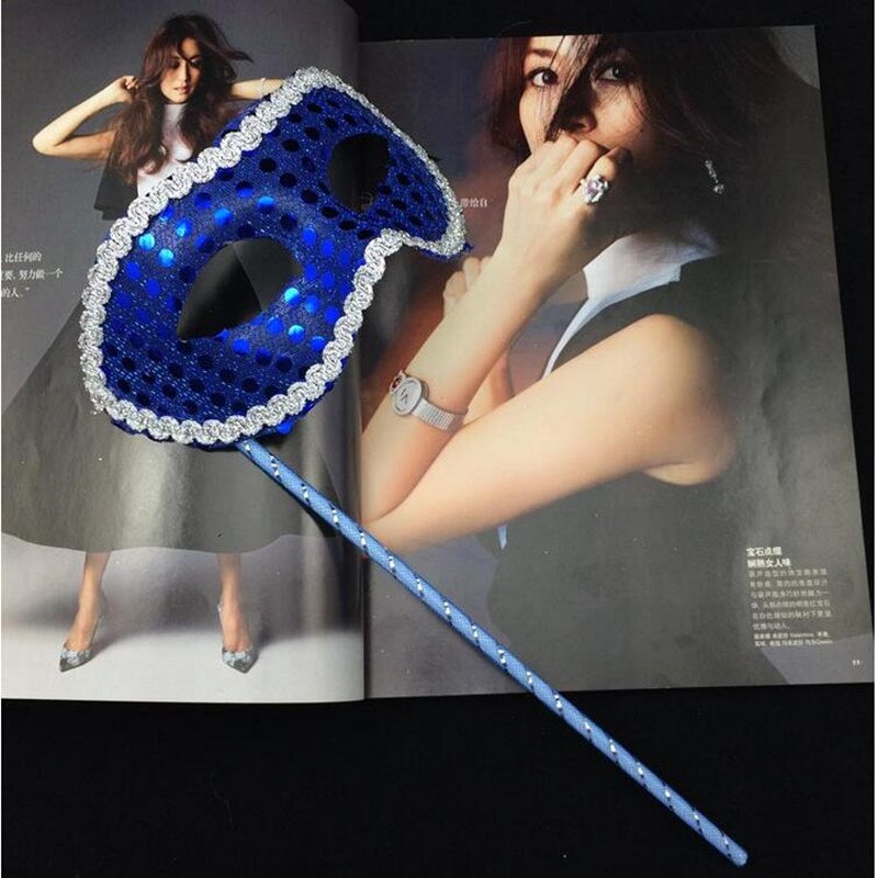 1pcs Women Men Masquerade Party Mask On Stick Handheld Sequin Venetian Ball Masks Wedding Birthday Night Club Carnival