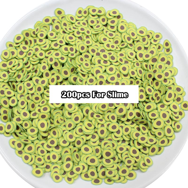 200Pcs Fruit Slices Decor Additives For Slime Filler Supplies Charms Clay Accessories Avocado For Nail Art Slime Toys