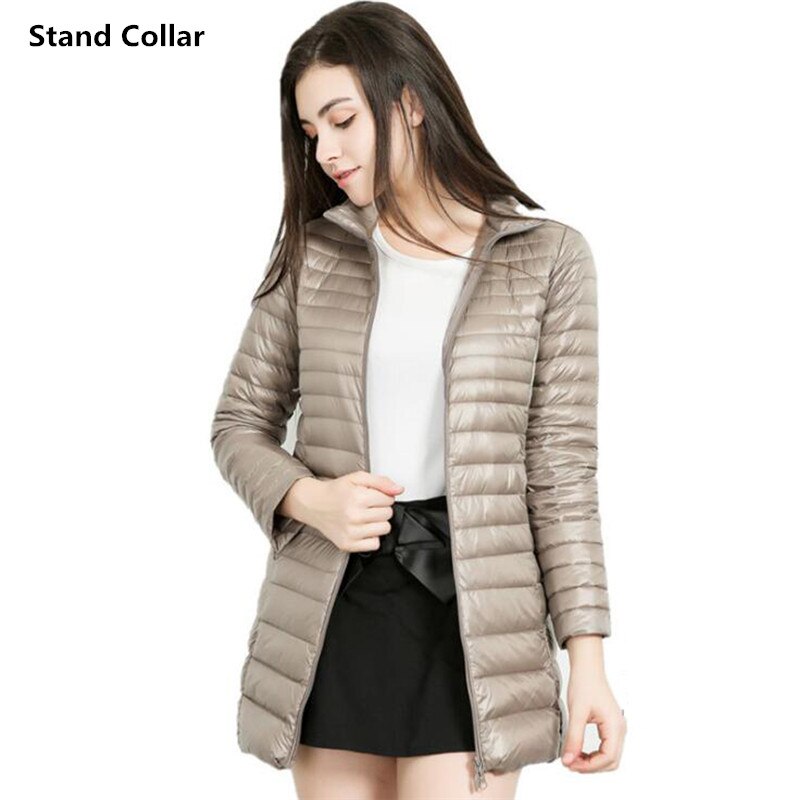 2019 Autumn Winter White Duck Downs Jacket Women Long Parka Hooded Coat Female Casual Ultralight Windproof Puffer Jacket 6XL 7XL