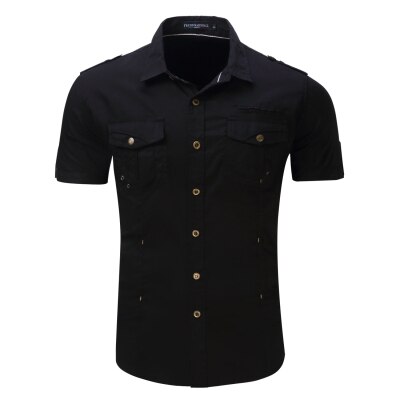 2019 New Arrive Mens Cargo Shirt Men Casual Shirt Solid Short Sleeve Shirts Multi Pocket Work Shirt Plus Size 100% Cotton