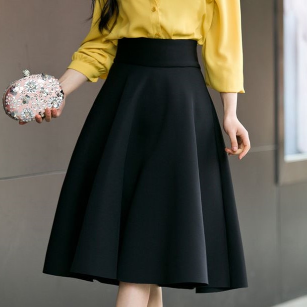 2019 New Fashion Women Cotton Space Knee-Length Big Swing Umbrella Skirt High Waist Vintage Ladies Midi Saia Skater Skirt 7340