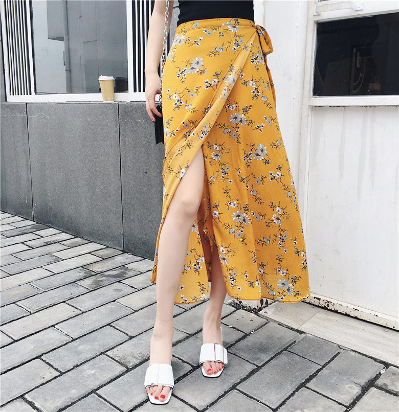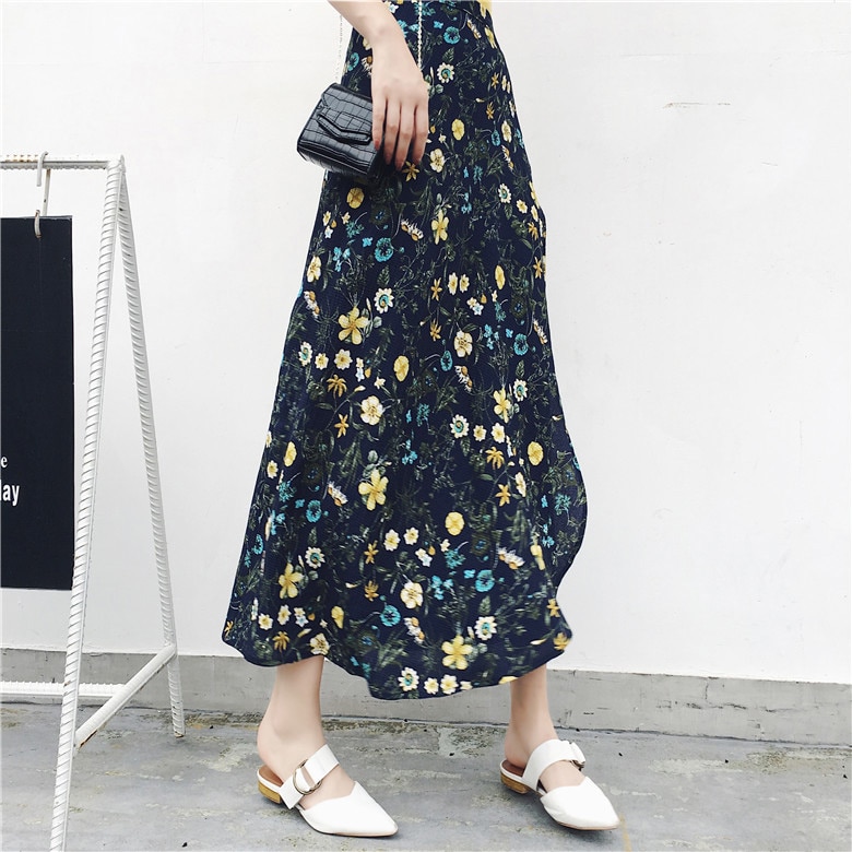 25 Colors 2019 Bohemian High Waist Floral Print Summer Skirts Womens Boho Asymmetrical Chiffon Skirt Maxi Long Skirts For Women