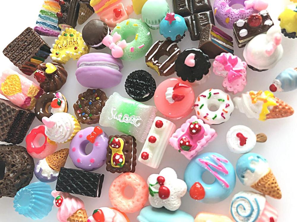 30pcs Random Mix Miniature Resin Cabochons Ice Cream Candy Chocolate Cake Beads DIY Phone Case Decor Jewelry Charms Accessories