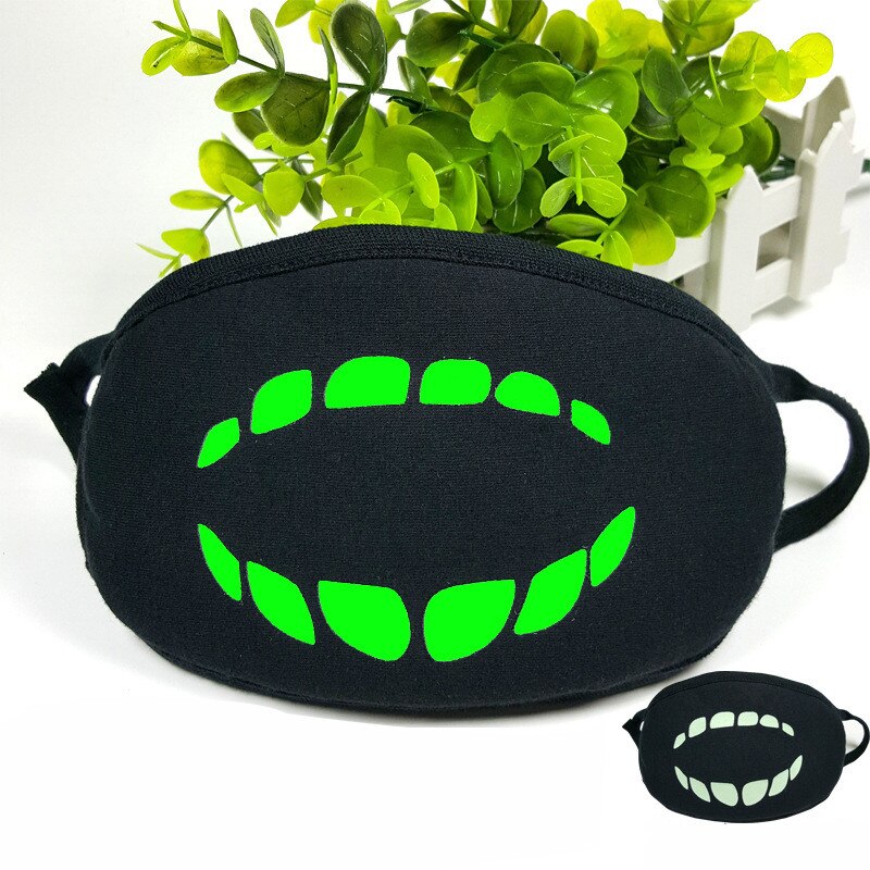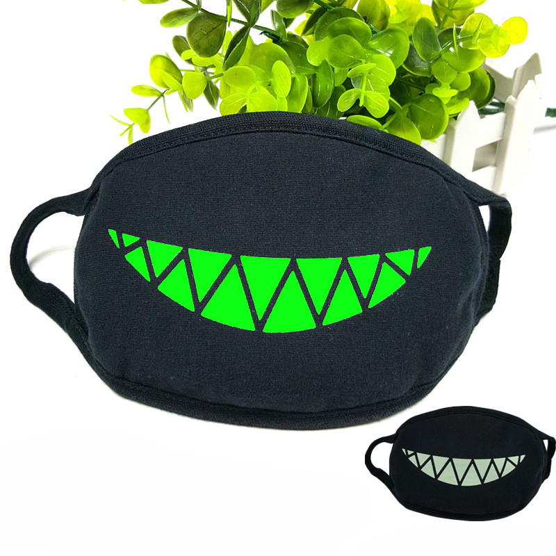 3pcs Creative Black Luminous Cotton Dust Mask Personality Teeth Anti-fog Haze Fashion Mouth Mask Halloween Horror Party Mask