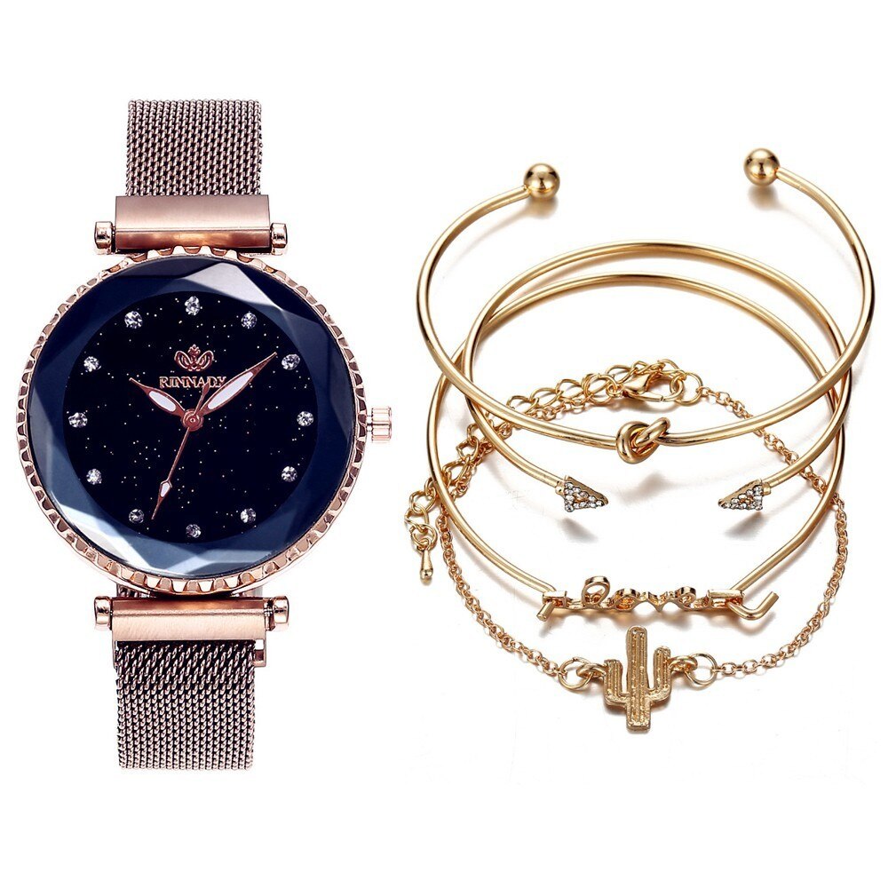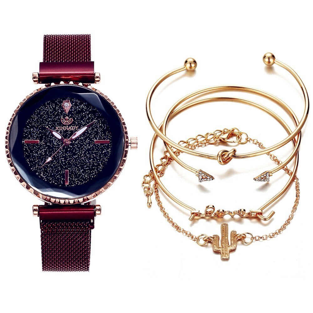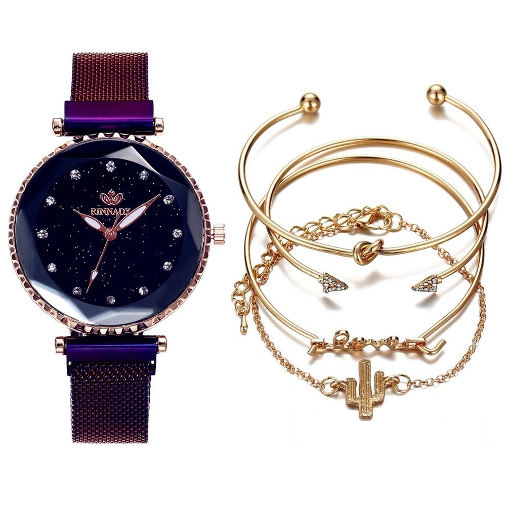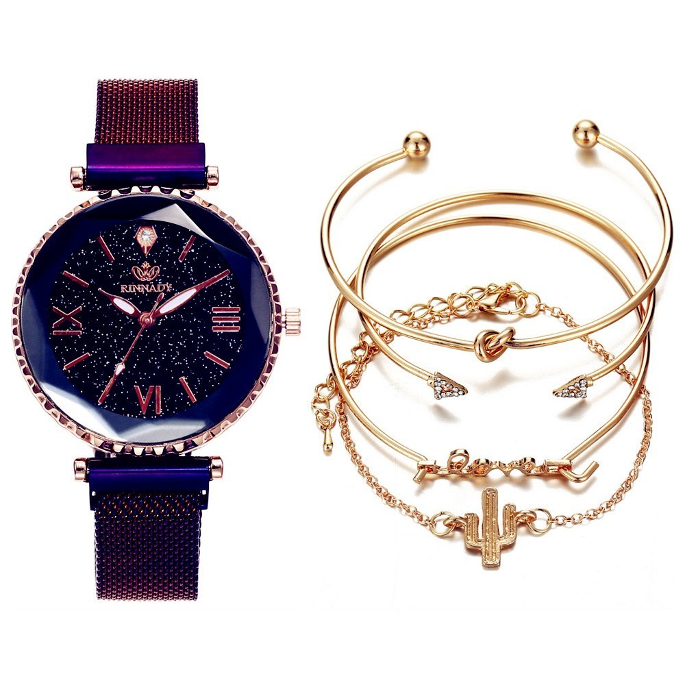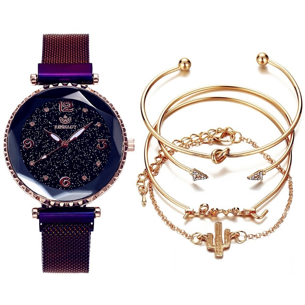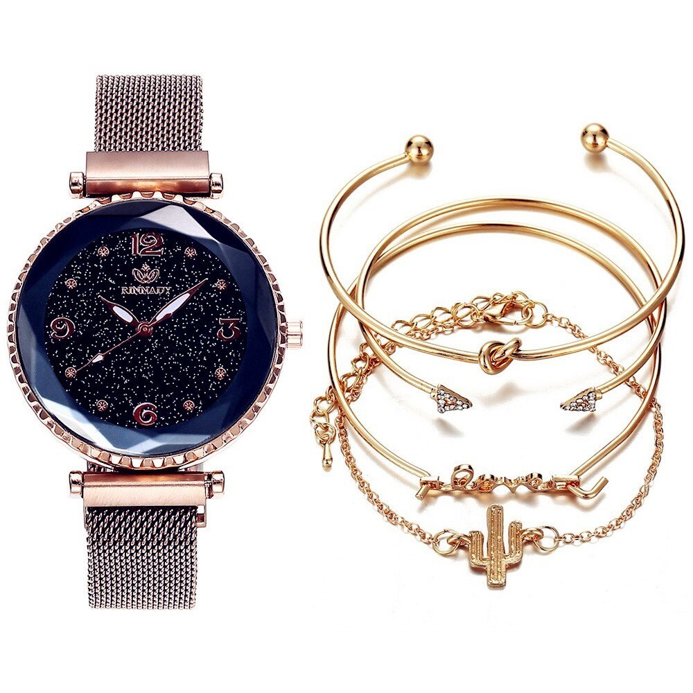5pc/set Luxury Brand Women Watches Starry Sky Magnet Watch Buckle Fashion Casual Female Wristwatch Roman Numeral Simple Bracelet