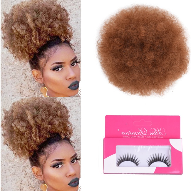 8inch Short Afro Puff Synthetic Hair Bun Chignon Hairpiece For Women Drawstring Ponytail Kinky Curly Updo Clip Hair Extensions