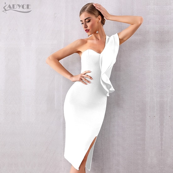 ADYCE 2019 New Summer Women Bandage Dress Celebrity Evening Party Dresses Sexy One Shoulder Ruffles Bodycon Club Dress Vestidos