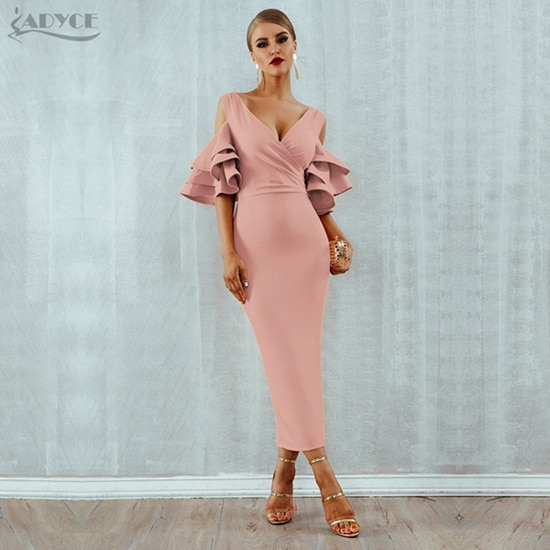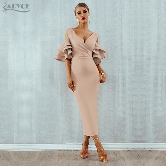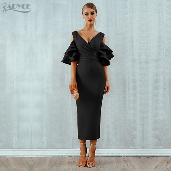 Adyce 2019 New Summer Women Club Dress Vestidos Celebrity Party Dress Yellow Red Ruffle Butterfly Short Sleeve Midi Club Dresses
