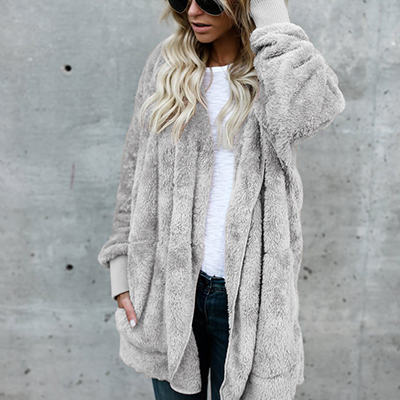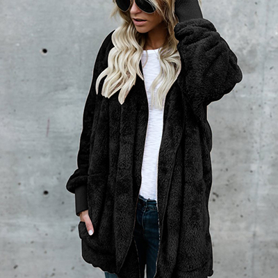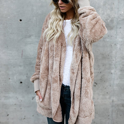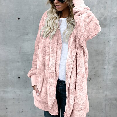 Autumn Hooded Open Stitch Faux Fur Coat Women Solid Plus Size Teddy Coat Winter Long Sleeve Pink Fashion Slim Fur Jacket Female