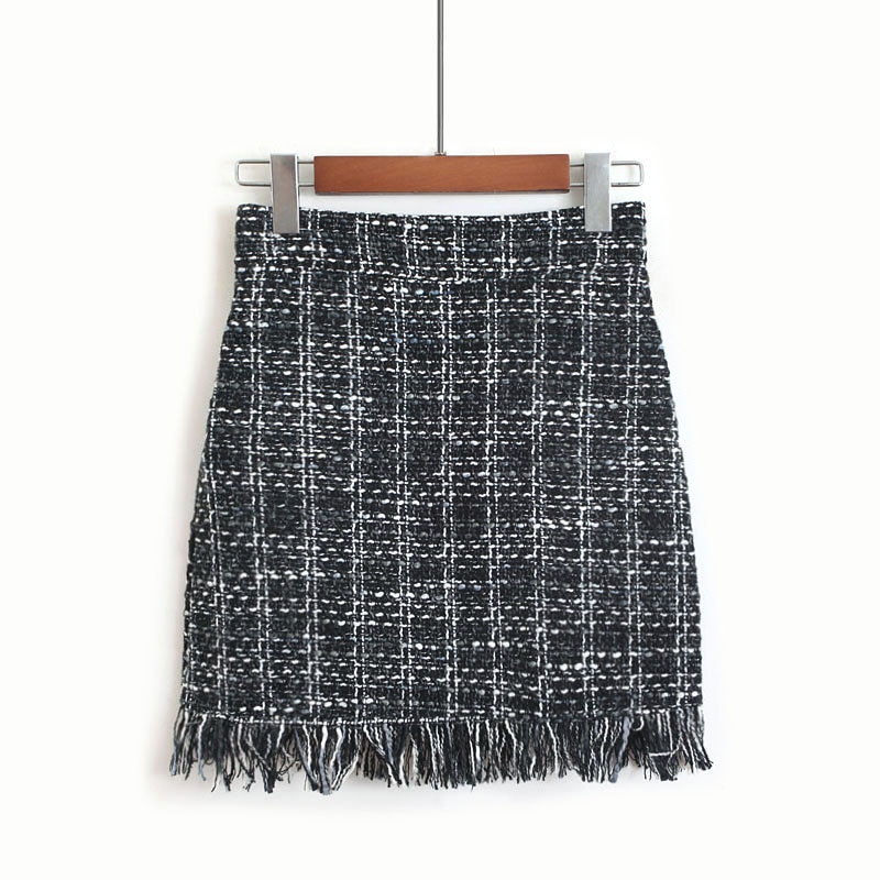 Colorfaith 2019 Women Woolen Mini Skirt Autumn Winter Vintage Straight Plaid Tassel Skater Skirt High Waist Femininas SK5583