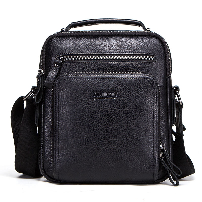 CONTACT’S 100% genuine leather men shoulder bag crossbody bags for men high quality bolsas fashion messenger bag for 9.7″ Ipad