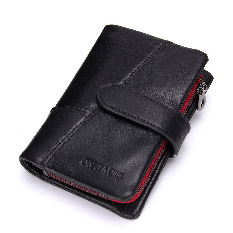 CONTACT’S Genuine Crazy Horse Cowhide Leather Men Wallets Fashion Purse With Card Holder Vintage Long Wallet Clutch Wrist Bag