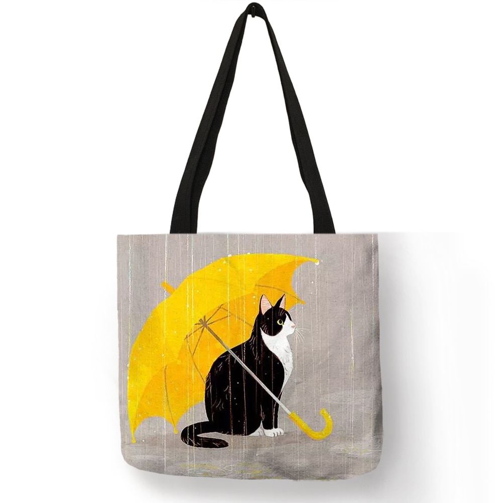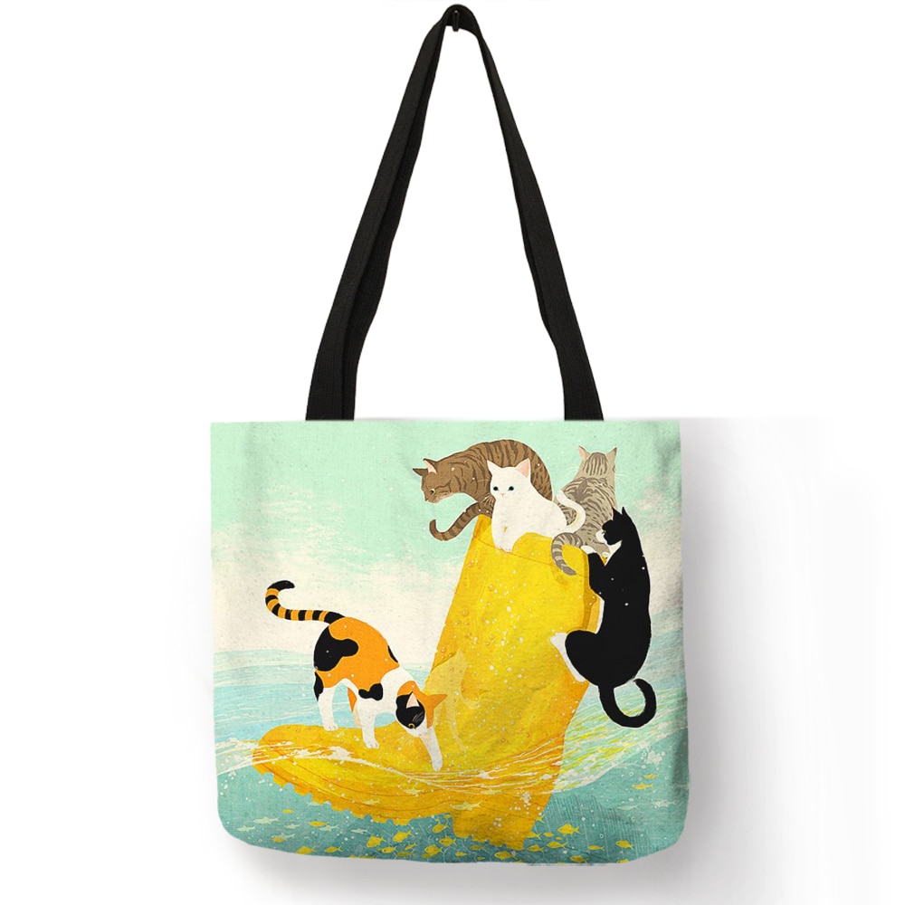 Customized Cartoon  Cat Print Tote Bag For Women Reusable Shopping Bags Folding Travel School Bags Pouch