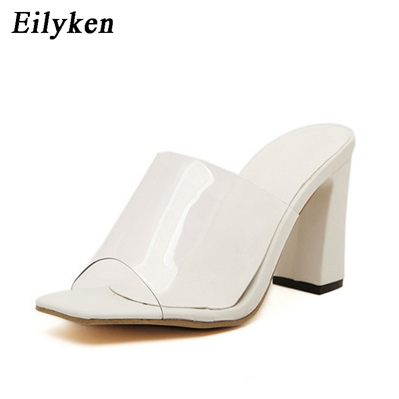 Eilyken Summer Fashion Woman Sandals Shallow Rome Mouth Female Casual Square heel Ladies thick Sandals Shoes White BLACK SIZE 40