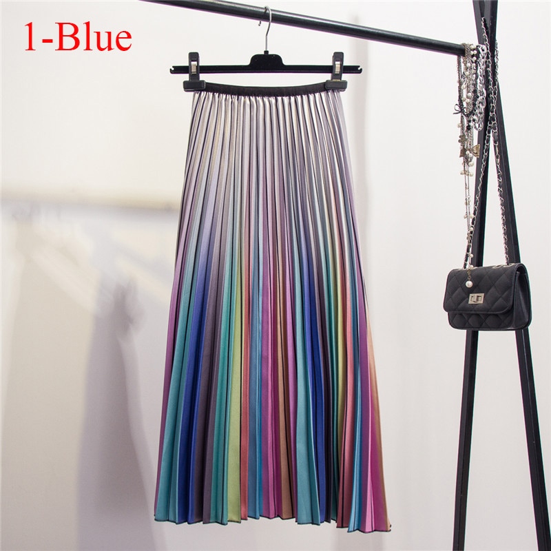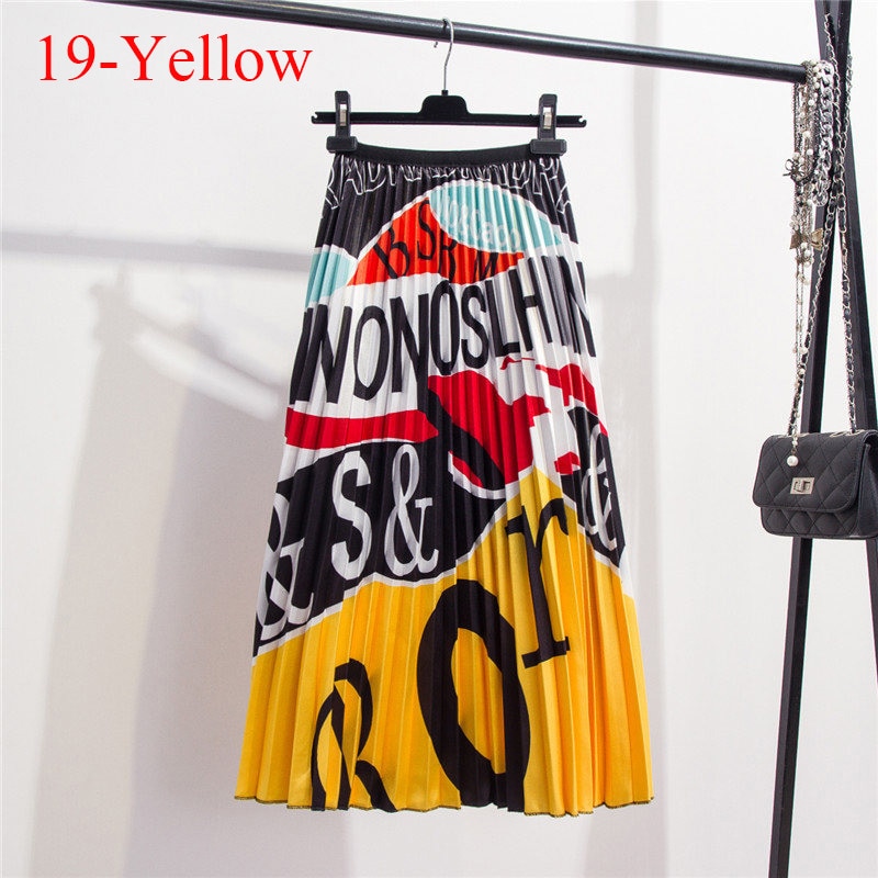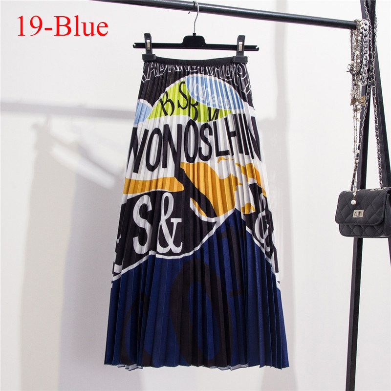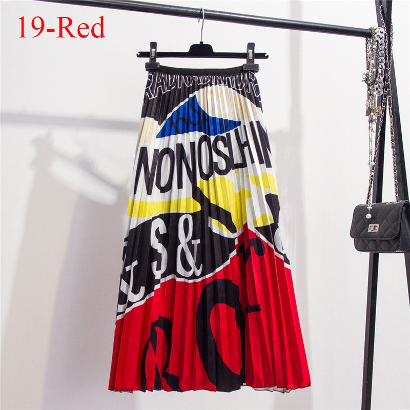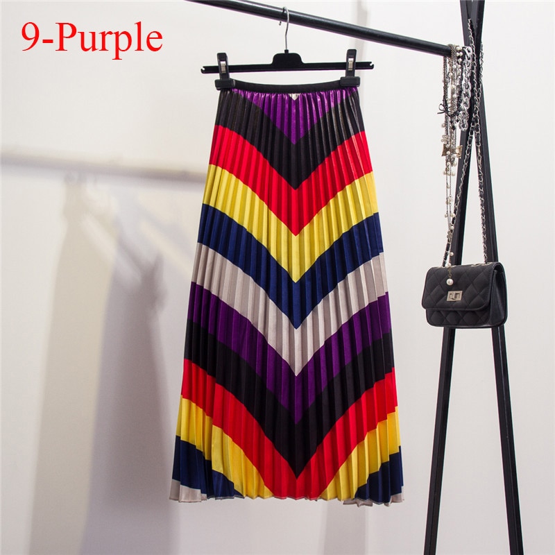 Fashion Contrast High Waist Pleated Skirt 2019 Autumn Winter Skirts Womens Elastic Waist A Line Midi Skirt Mid Calf Long Skirts