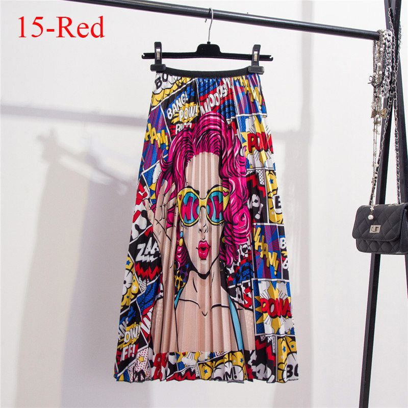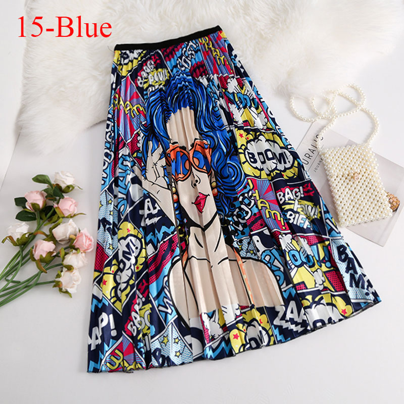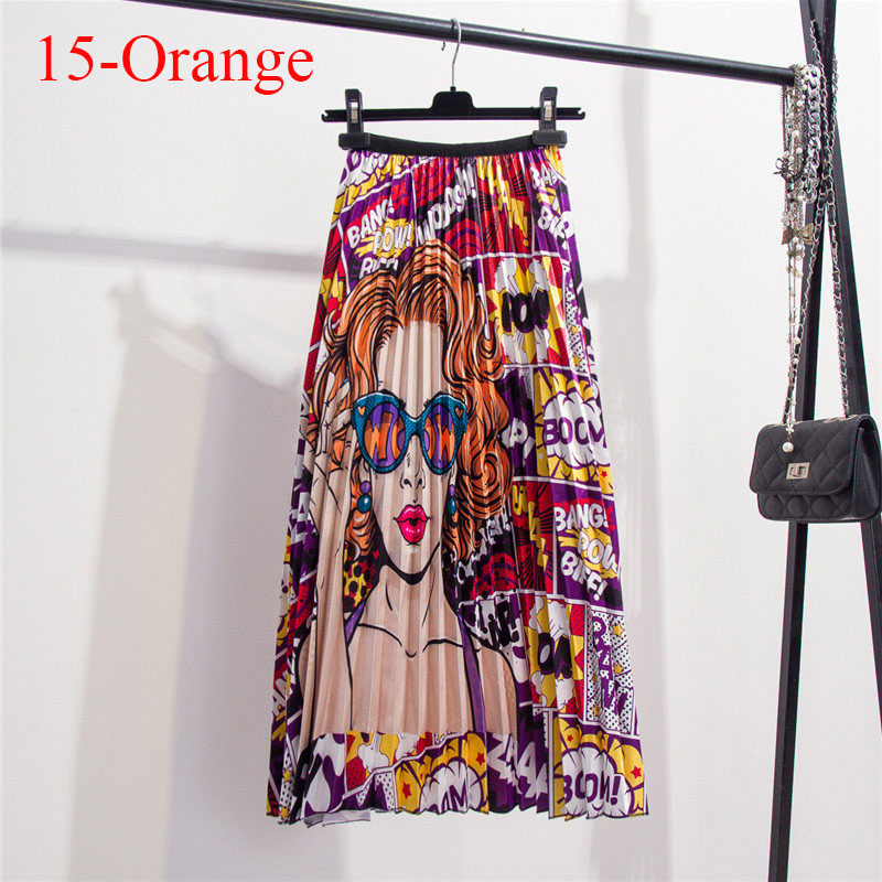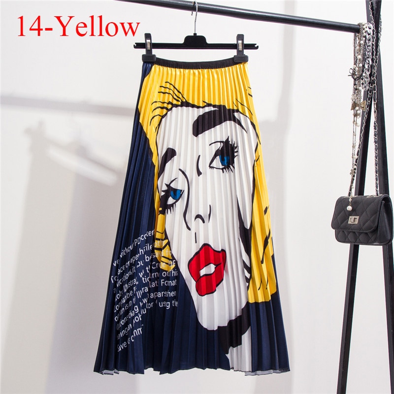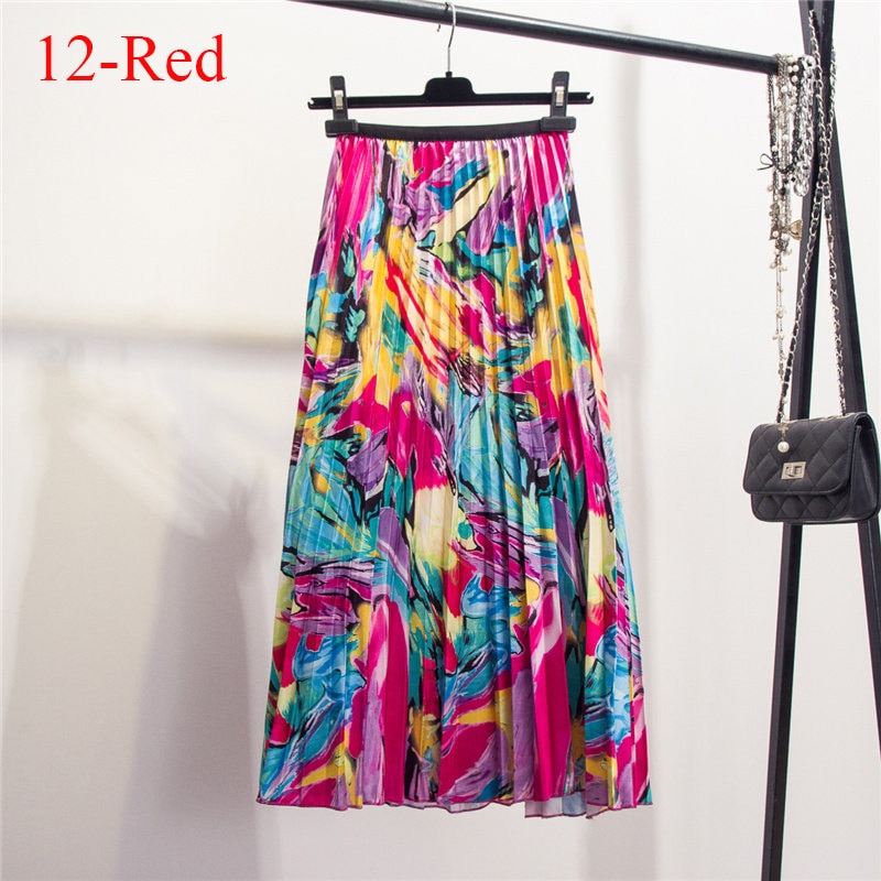 Fashion Contrast High Waist Pleated Skirt 2019 Autumn Winter Skirts Womens Elastic Waist A Line Midi Skirt Mid Calf Long Skirts