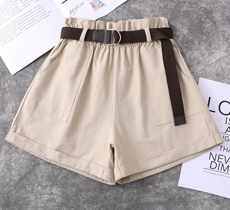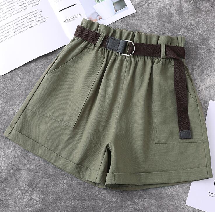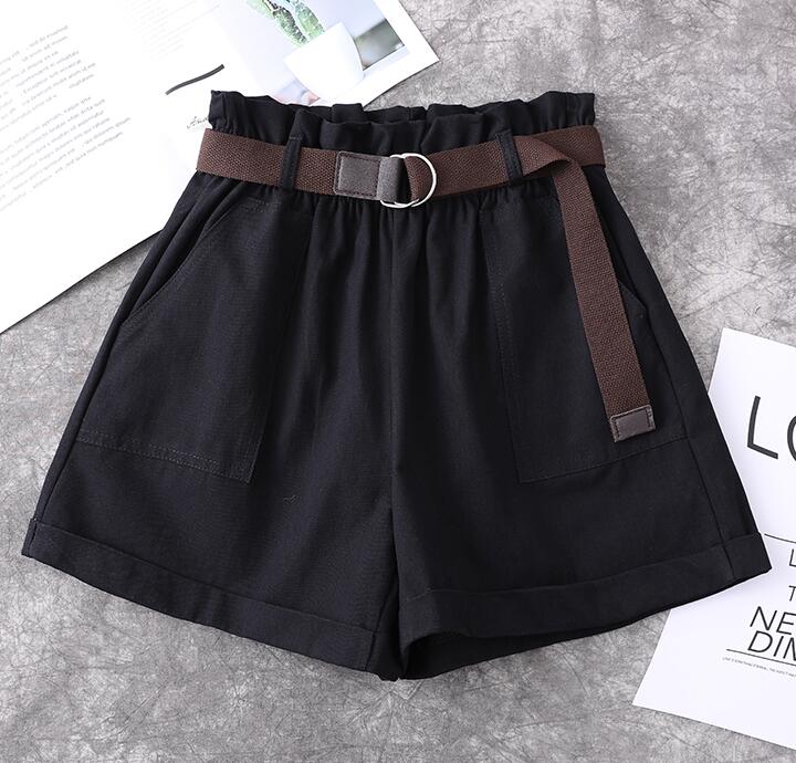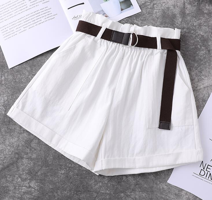 Fashion Harajuku Plus Size Shorts For Women Summer Elastic High Waist Short Femme Cuffs Wide Leg With Belt Cotton Ladies Shorts