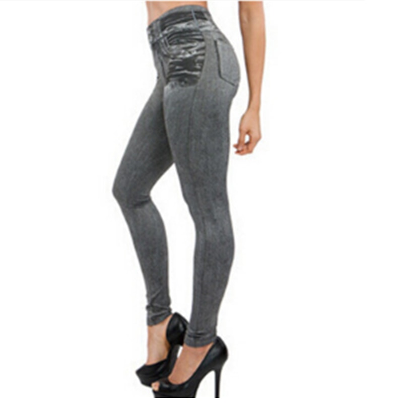 Fashion Slim Women Leggings Faux Denim Jeans Leggings Sexy Long Pocket Printing Summer Leggings Casual Pencil Pants dropship