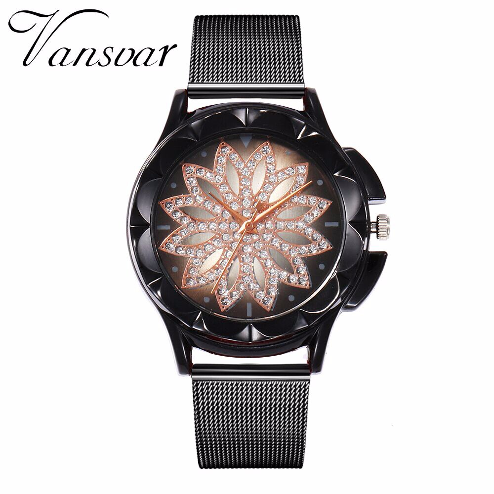 Fashion Women Rose Gold Flower Rhinestone Wrist Watches Luxury Casual Female Quartz Watch Relogio Feminino Drop Shipping