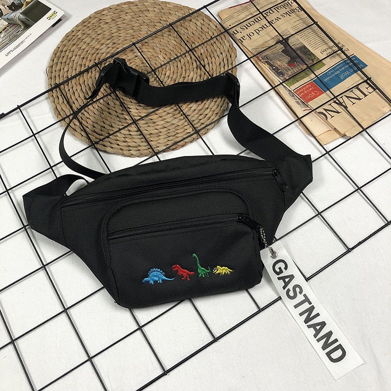 Female Cute Cartoon Dinosaur Embroidery Large Waist Bag Women Mobile Harajuku Hip Hop Street Chest Fanny Pack Bel Cantasi 186