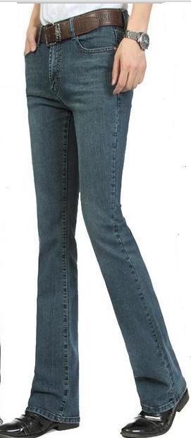Free Shipping Men's Business Casual Jeans Male Mid Waist Elastic Slim Boot Cut Semi-flared Four Seasons Bell Bottom Jeans 26-38