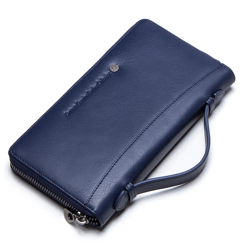 Genuine Leather Men Clutch Wallet Brand Male Card Holder Long Zipper Around Travel Purse With Passport Holder 6.5″ Phone Case