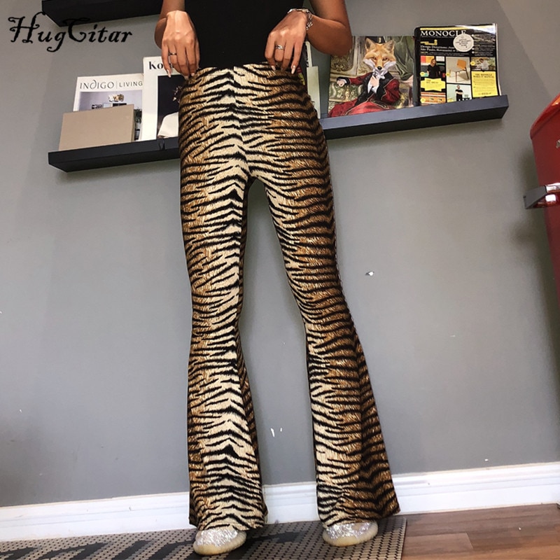 Hugcitar high waist leopard print flare leggings 2018 autumn winter women fashion sexy bodycon trousers club pants