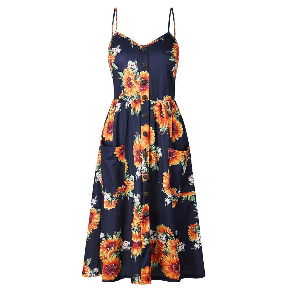 Ladies Print Floral Long Boho Bohemian Beach Summer Dress Women Sundress Sexy V-Neck Sleeveless Strap Maxi Vintage Dress Vestido