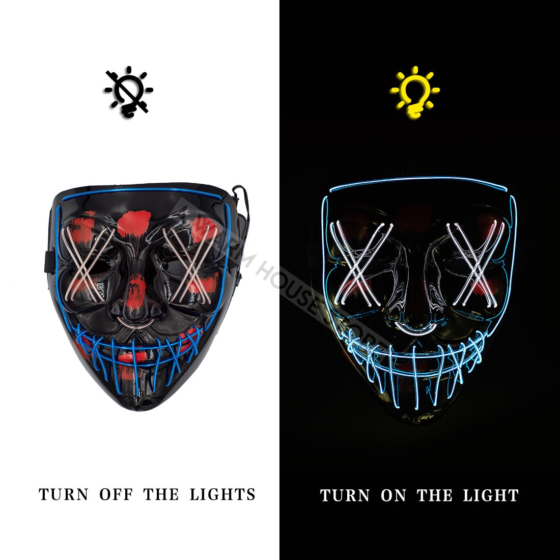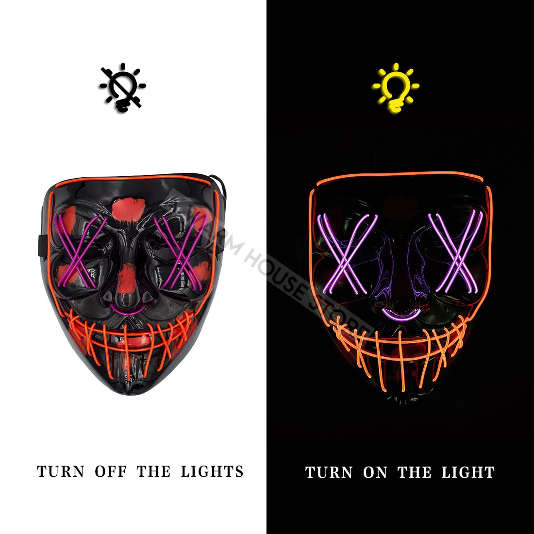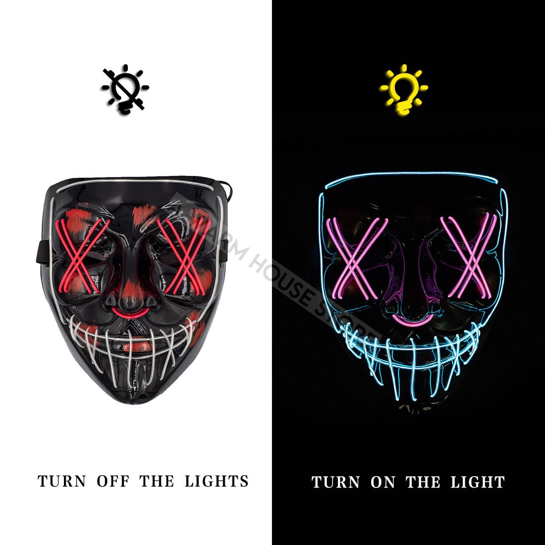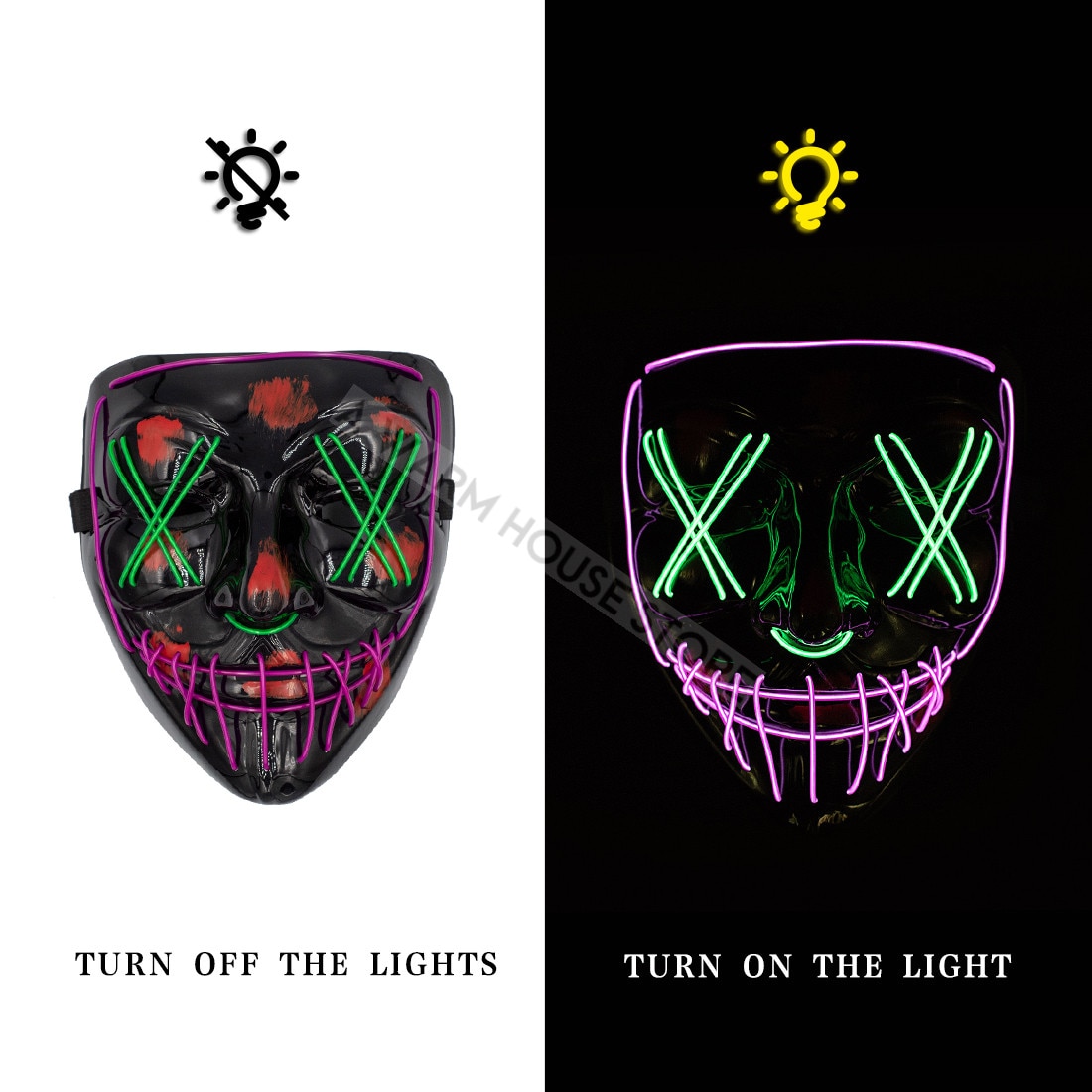 Led Mask Halloween Party Masque Masquerade Masks Neon Maske Light Glow In The Dark Mascara Horror Maska Glowing Masker Purge