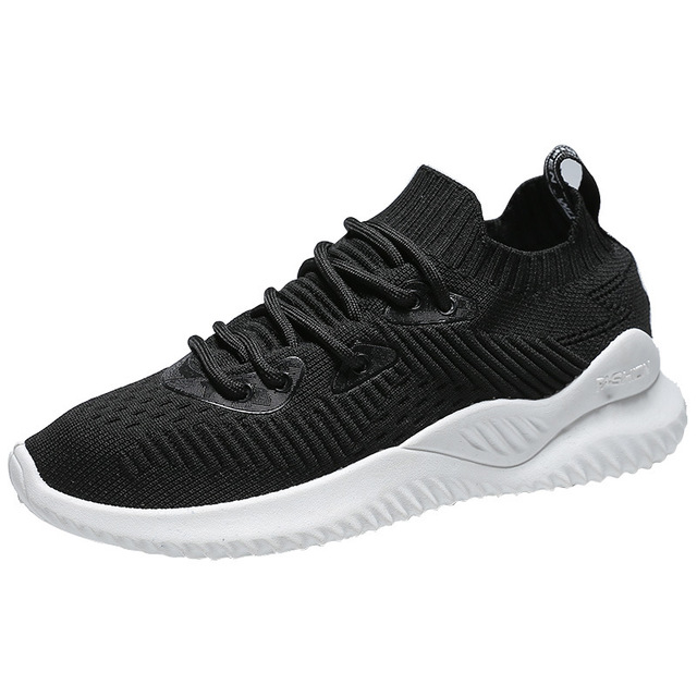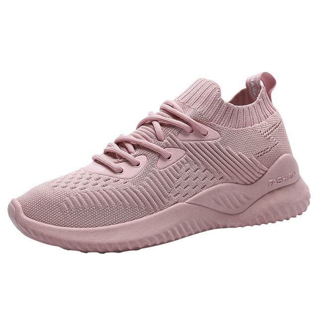 Luxury Women's Shoes Casual Fashion Sneaker Flat Platform Flyknit Stretch Fabric Ladies Shoes 2018 New Mesh Lace-up High Quality