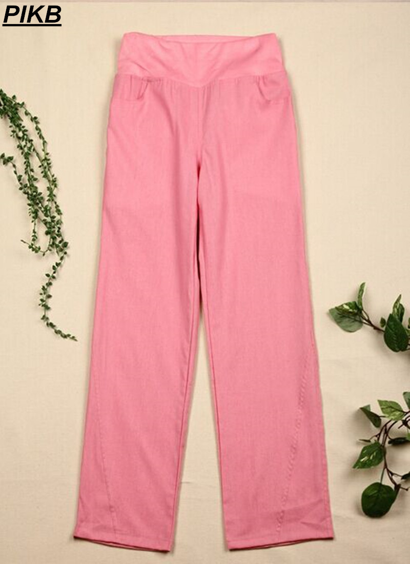 Makuluya2019 Better Linen FREEOEM linen elastic waist All-Match wide leg casual top straight pants Comfortable loose trousers L6