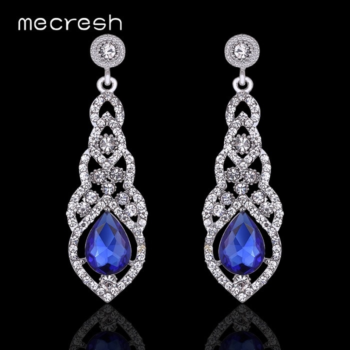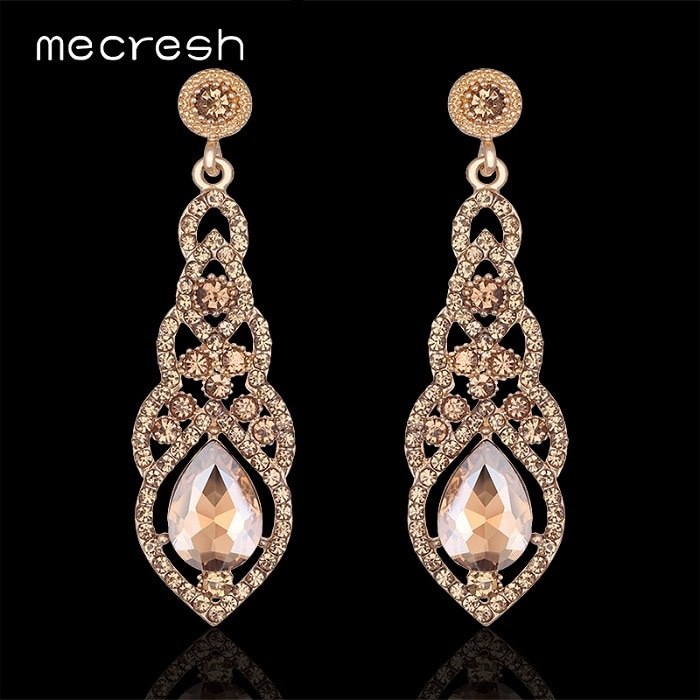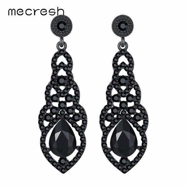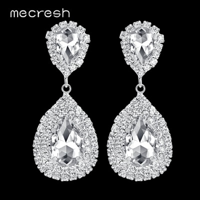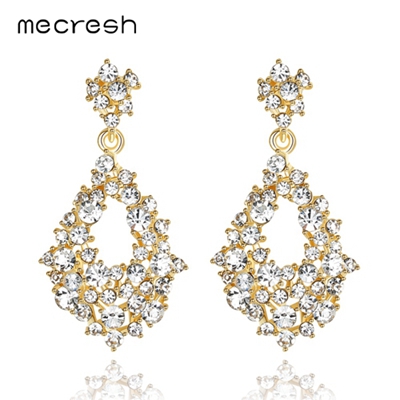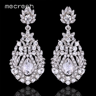 Mecresh Crystal Wedding Drop Earrings for Women Silver Black Gold Color Korean Bridal Dangle Earring 2019 Fashion Jewelry EH444