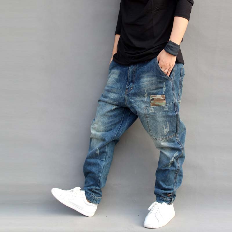 Mens Jeans Casual Joggers Plus Size Hip Hop Harem Denim Pants Camouflage Patchwork Quality Trousers Blue Jeans Male Clothes