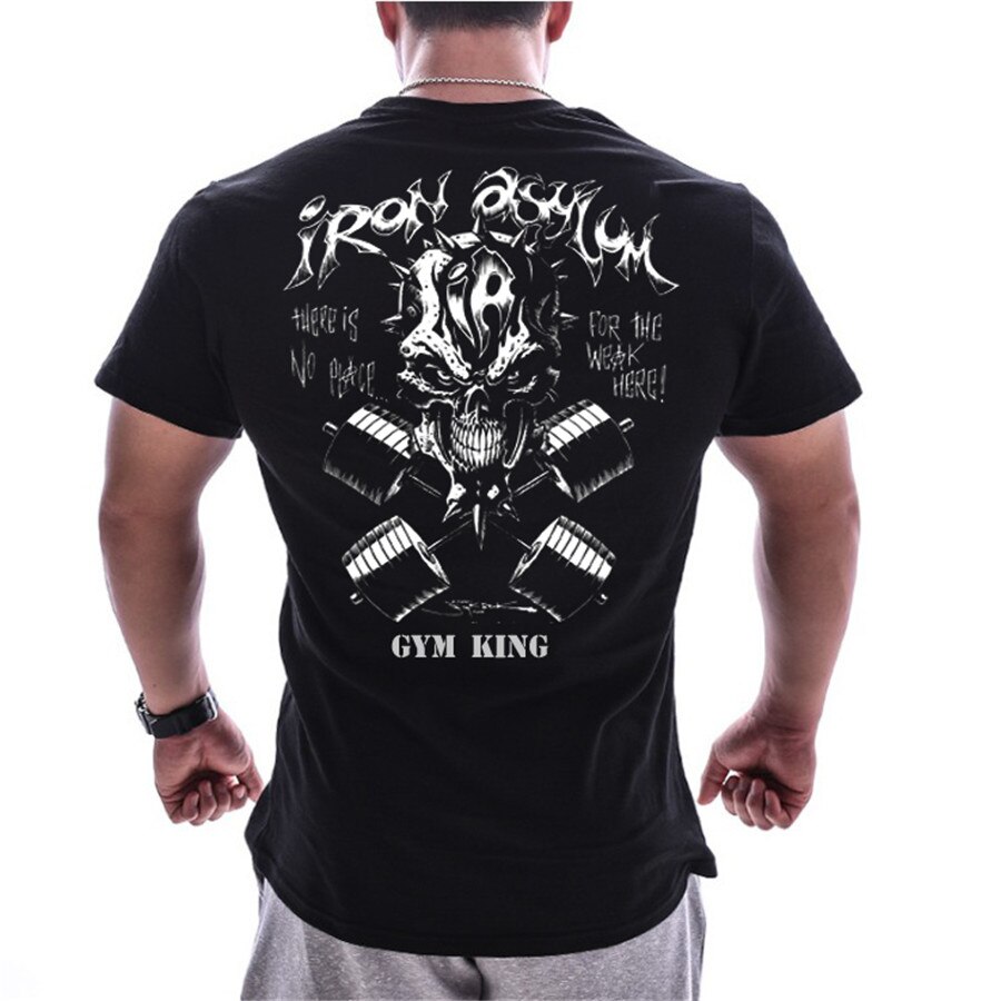 Mens Running Sport Cotton T-shirt Gym Fitness Bodybuilding Skinny Print t shirt Summer Male Jogging Training Tee Tops Clothing