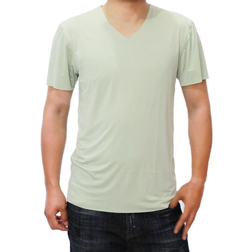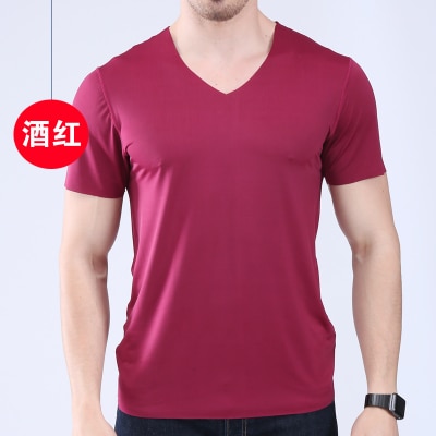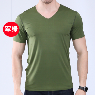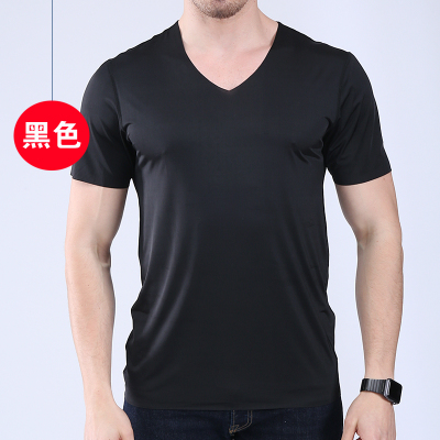Men's t-shirt thin section short-sleeved summer ice silk without trace Slim stretch V-neck solid color bottoming t-shirt slim