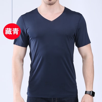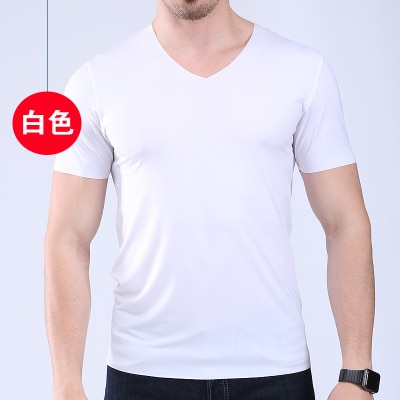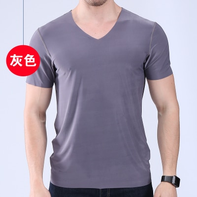 Men’s t-shirt thin section short-sleeved summer ice silk without trace Slim stretch V-neck solid color bottoming t-shirt slim