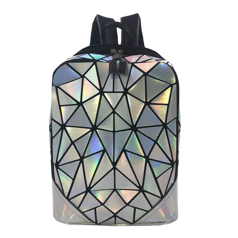 New Women Backpack Geometric Folding Bag Small Students School Bags For Teenage Girls Luminous Backpacks Hologram Daily Backpack