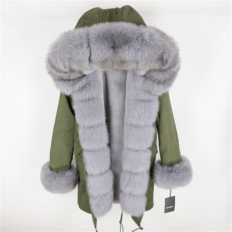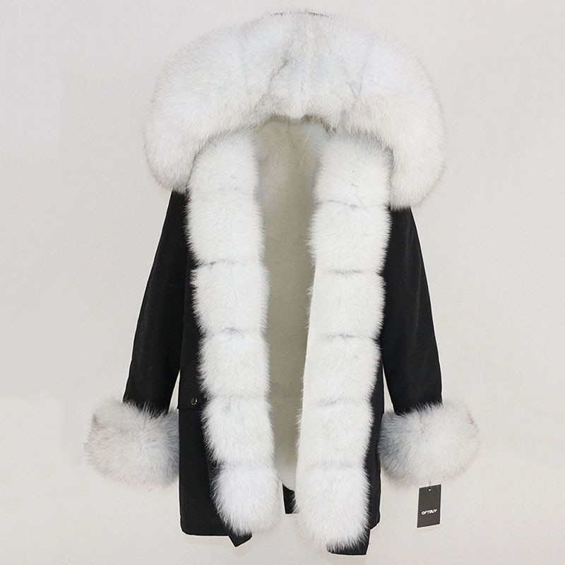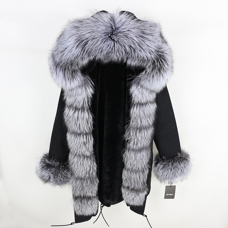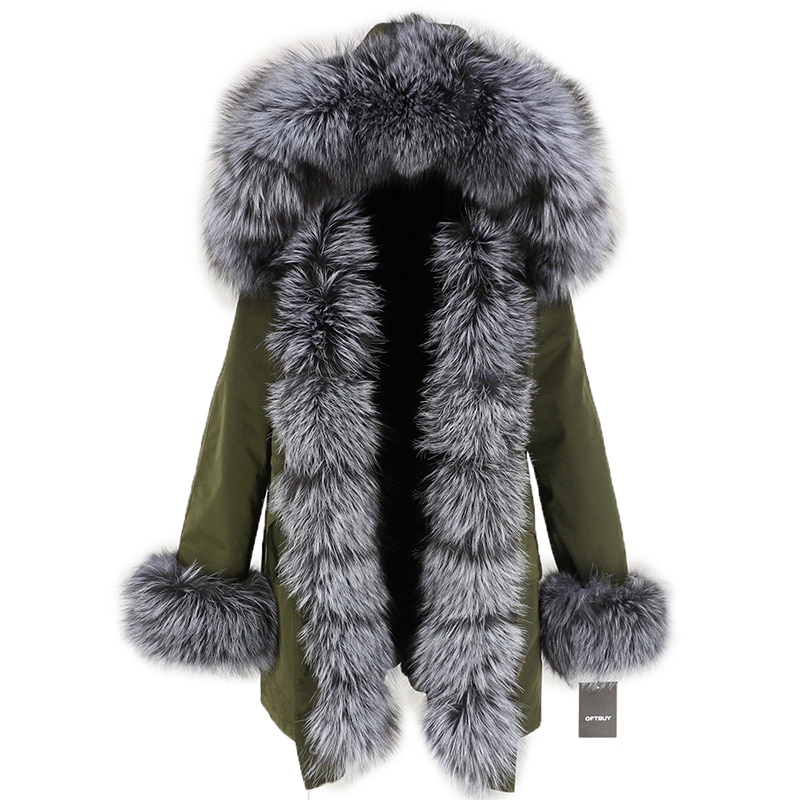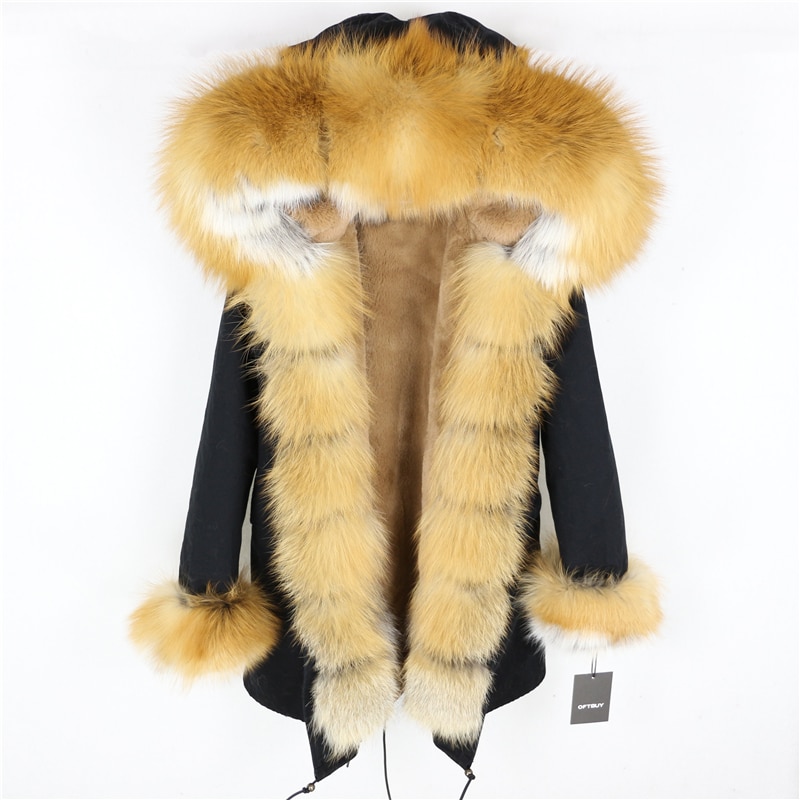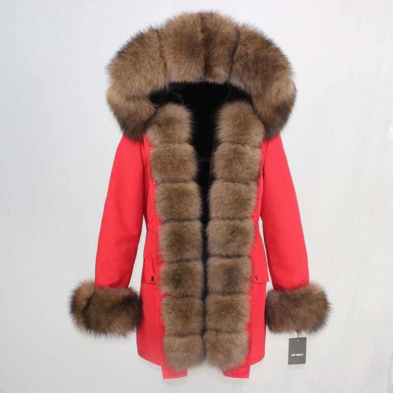 OFTBUY 2019 fashion winter jacket women real fur coat natural real fox fur collar loose long parkas big fur outerwear Detachable