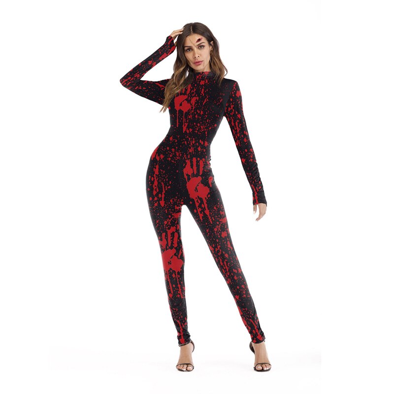 One Piece Female Skull Skeleton Costume Halloween Party Wear Scary Woman Jumpsuit Skinny Zombie Vampire Cosplay for Ladies