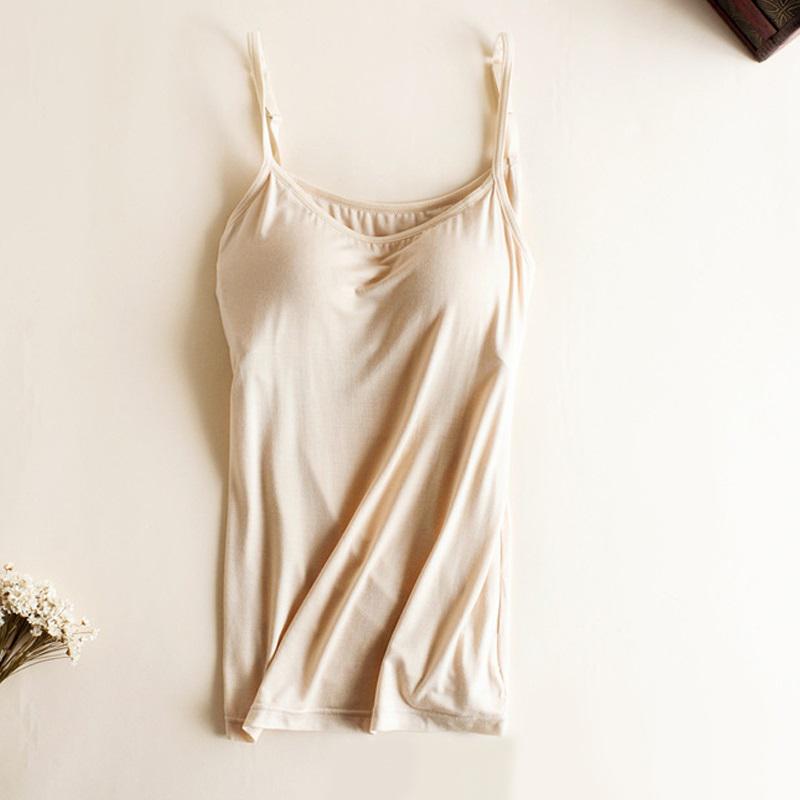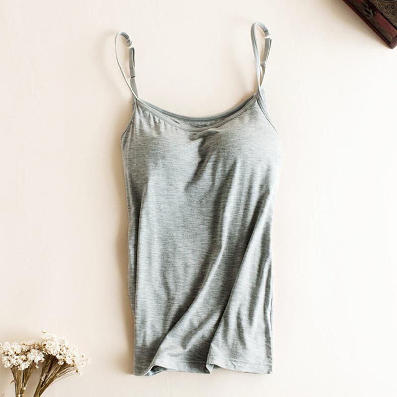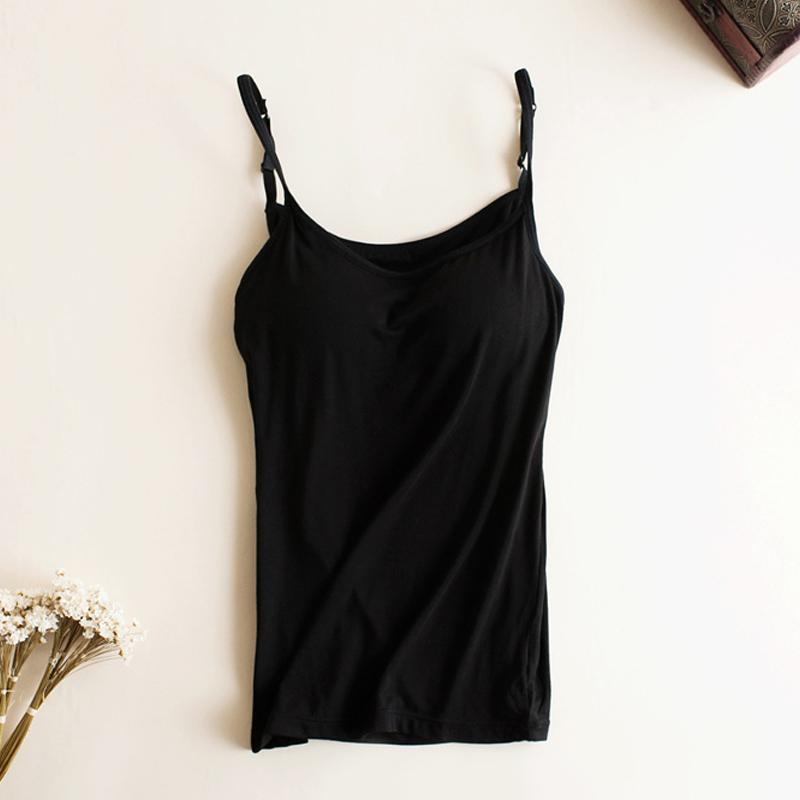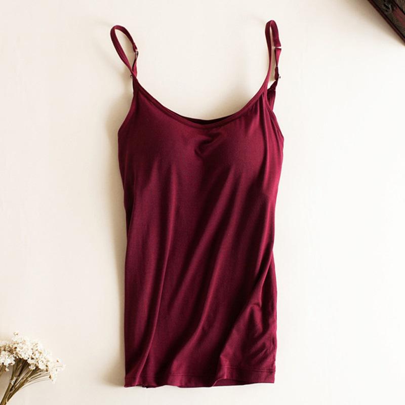 Padded Bra Tank Top Women Modal Spaghetti Strap Camisole with built in bra Solid Cami Top female Tops Vest Fitness Clothing