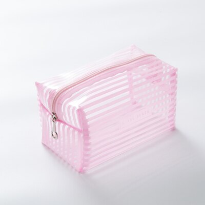 Portable Waterproof Transparent Makeup Bag Fashion Striped Zipper Cosmetic Organizer Women Travel Toiletry Bag
