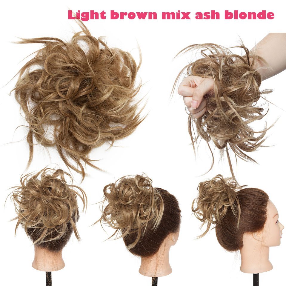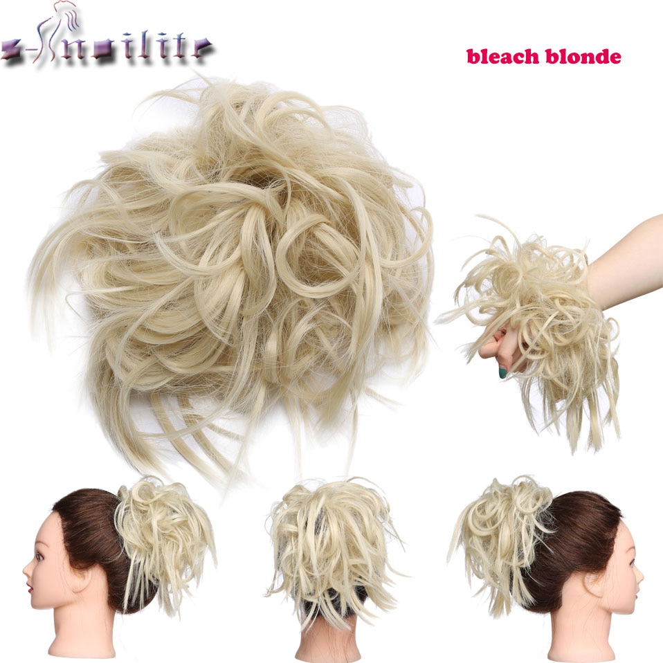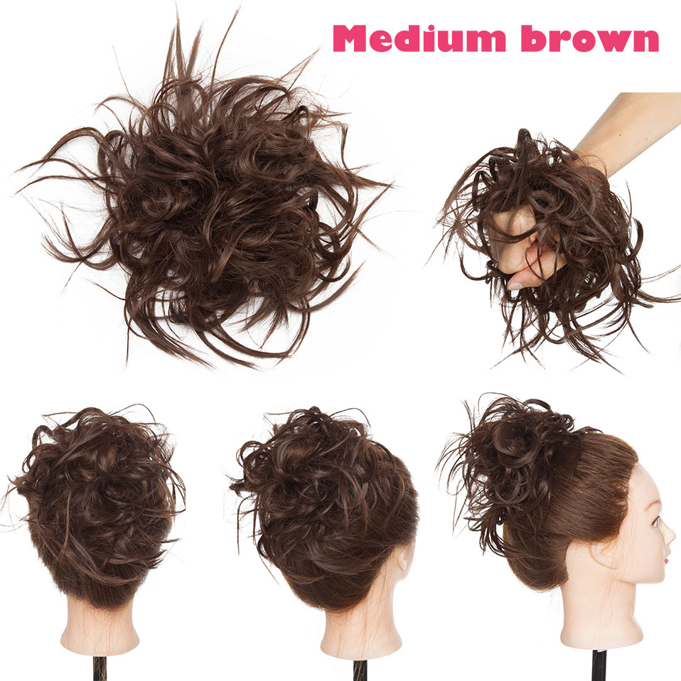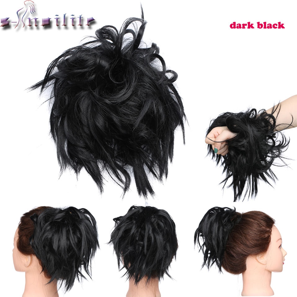 S-noilite 7 Inch Messy Bun Tousled hairpiece Elastic Band Chignon hair Curly Scrunchie Updo Cover Synthetic Hairpiece for women