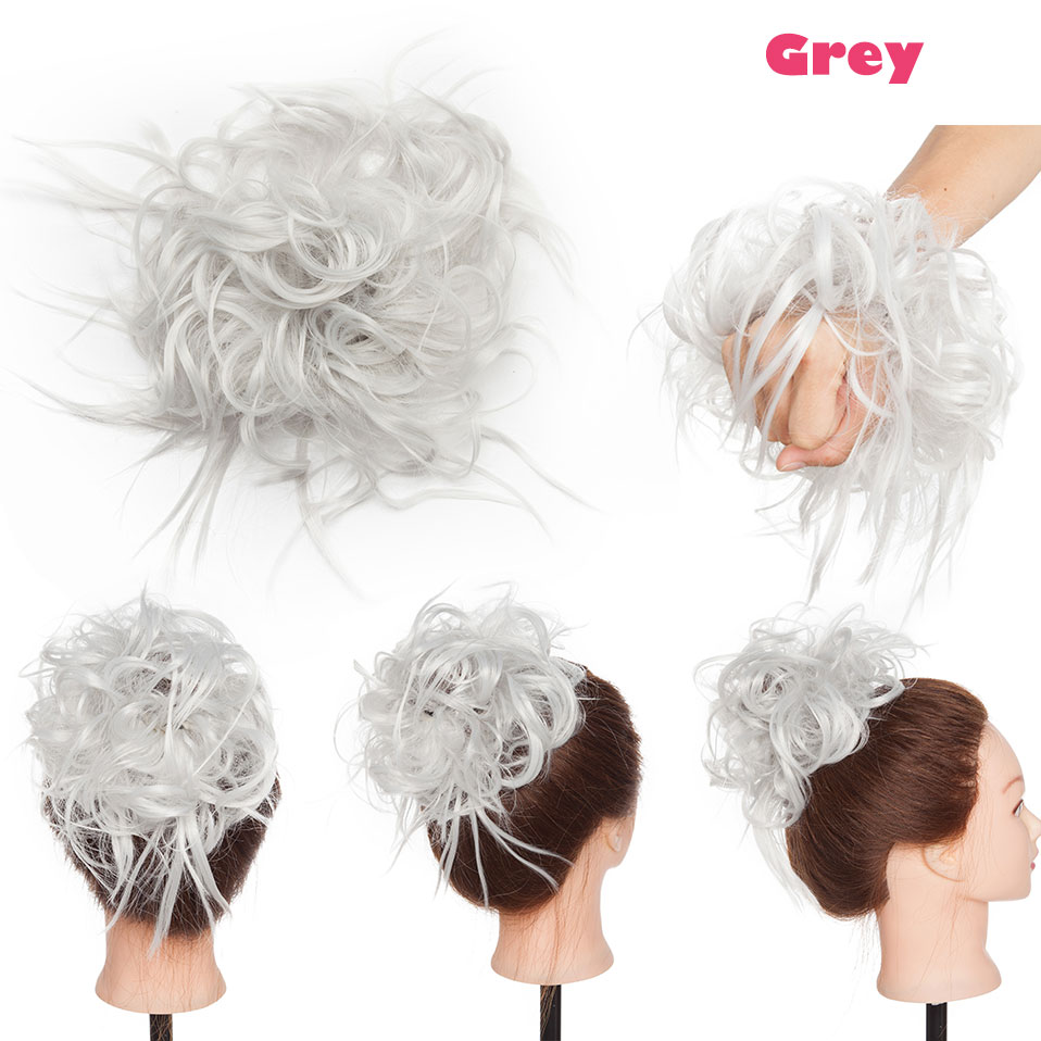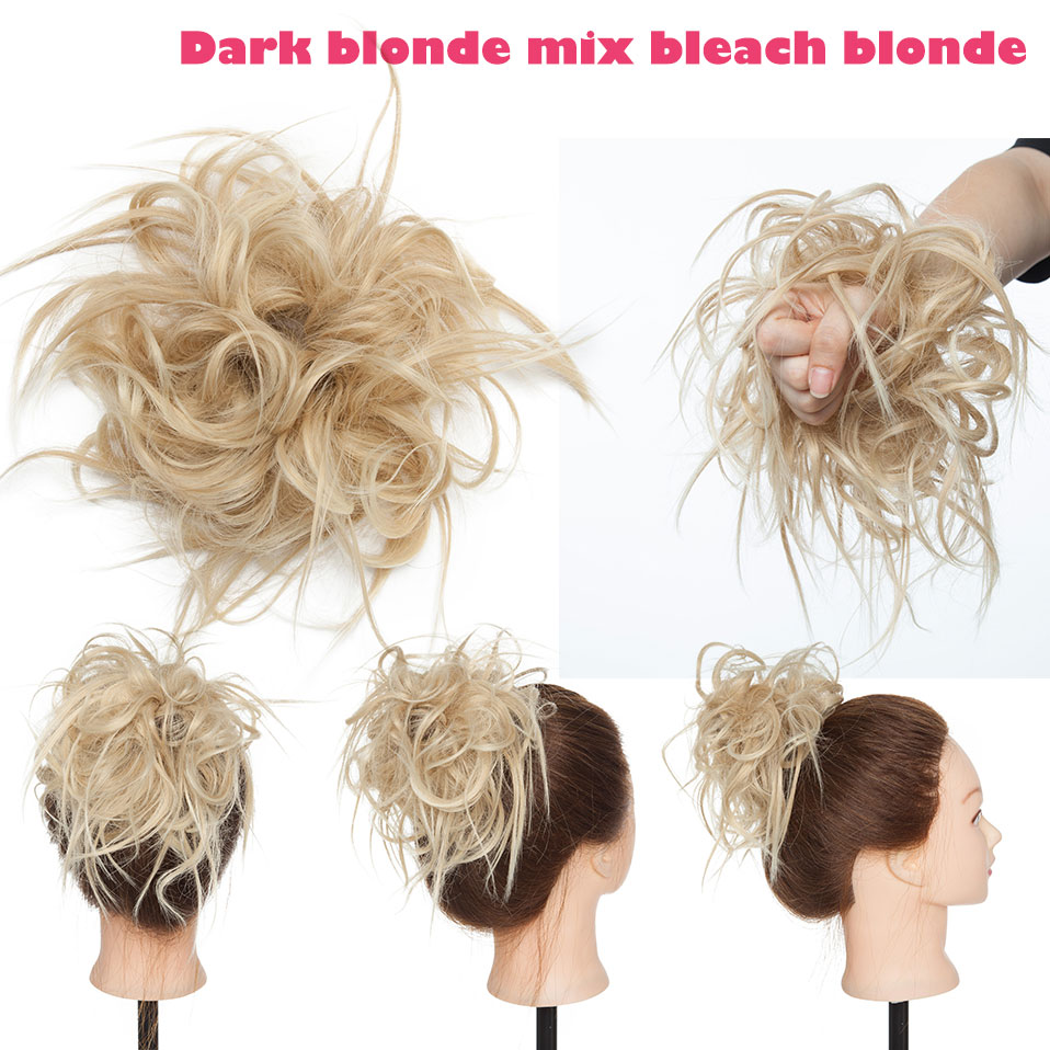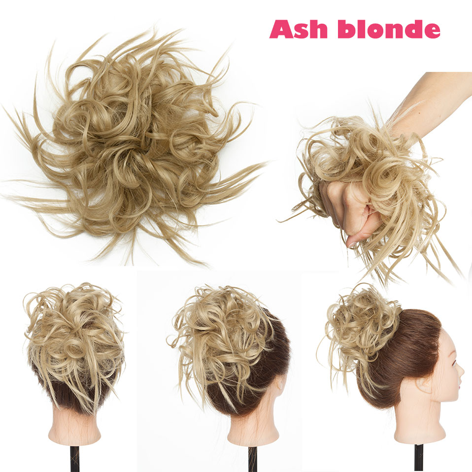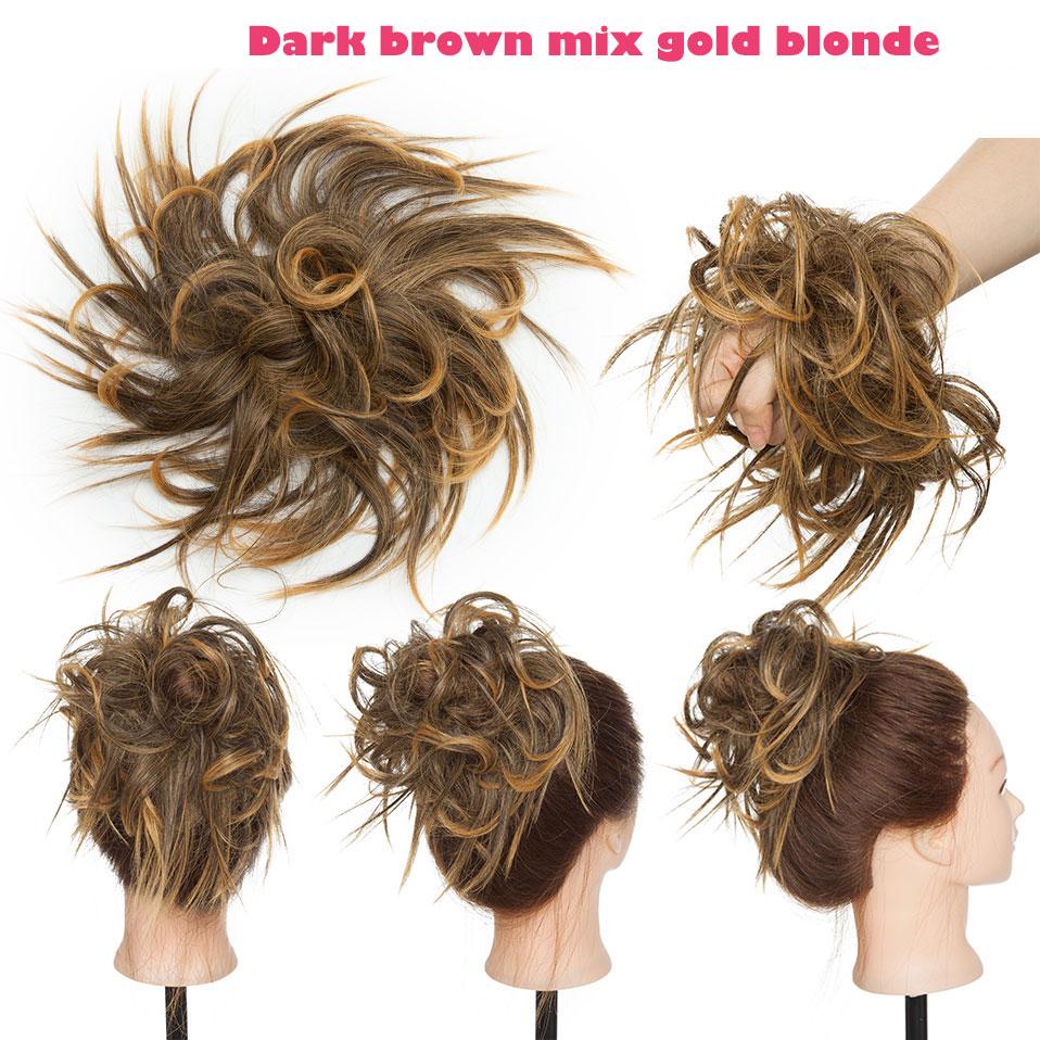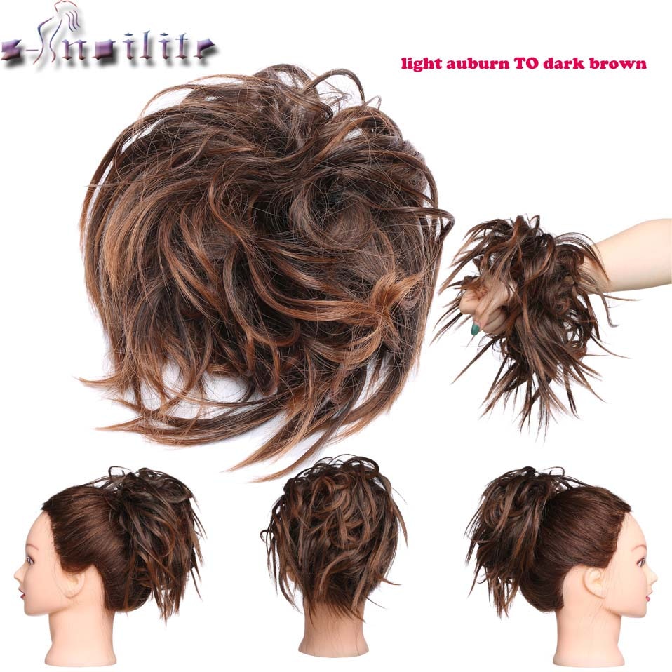 S-noilite 7 Inch Messy Bun Tousled hairpiece Elastic Band Chignon hair Curly Scrunchie Updo Cover Synthetic Hairpiece for women