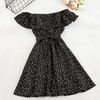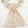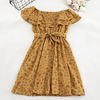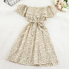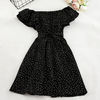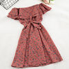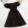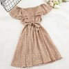 SINGRAIN Women Floral Dress bohemian A-Line slash neck short sleeves dress summer vintage beach off shoulder Polka Dot Sundress