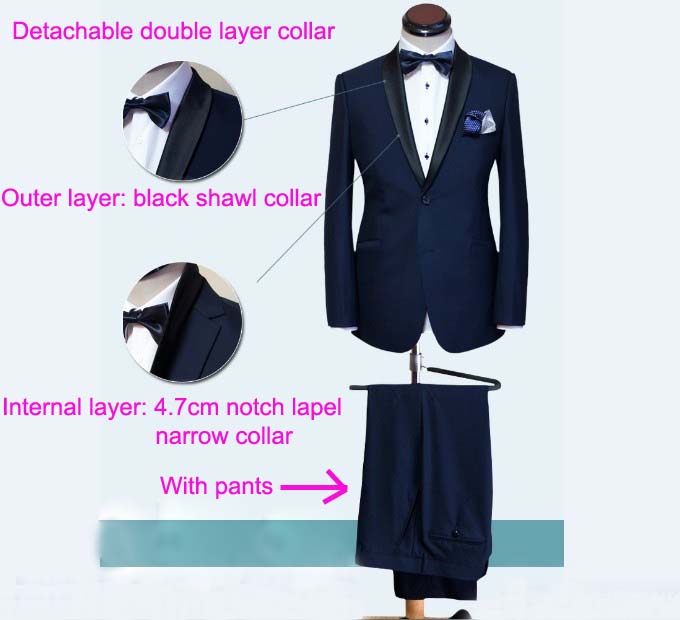 Skyfall Navy Blue Tuxedo Men Suit Custom Made,Skyfall Midnight Blue Wedding Suits For Men,Bespoke Double Collar Tuxedos For Men