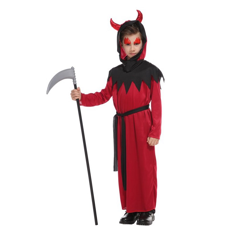 Umorden Scary Red Horn Devil Devilkin Costumes for Kids Child Boys Girls Demon Costume Cosplay Fancy Dress Robe Halloween