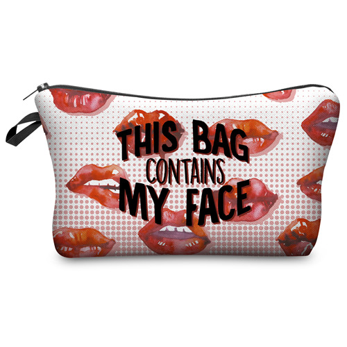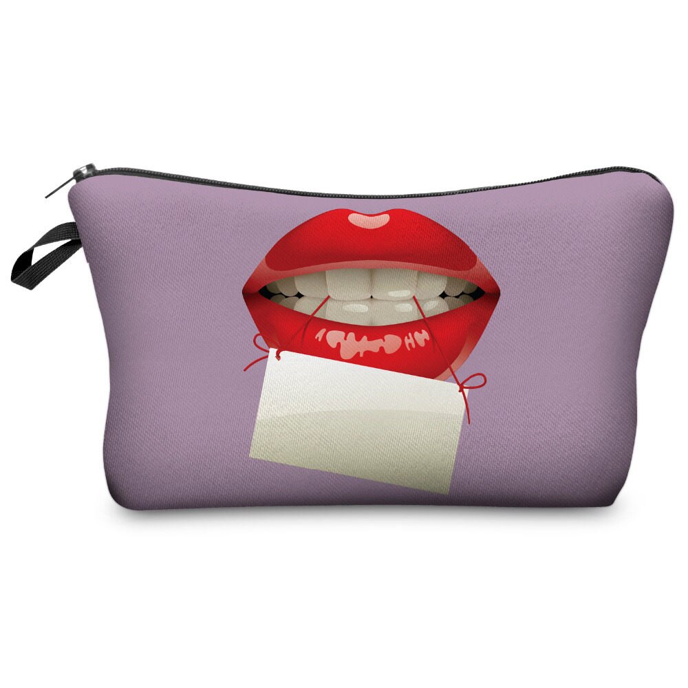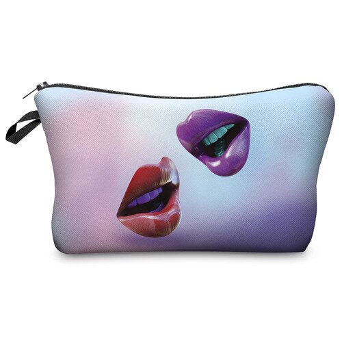 Who Cares Fashion Pink Lips Dot Printing With Multicolor Pattern Makeup Bags Travel Ladies Pouch Women Cosmetic Bag