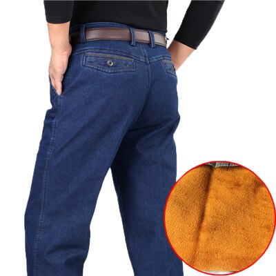 Warm Mens Denim Pants,Loose Cotton Jeans,Middle Age Men