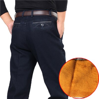 Winter Mens Thick Warm Jeans Classic Fleece Male Denim Pants Cotton Blue Black Quality Long Trousers for Men Brand Jeans Size 42