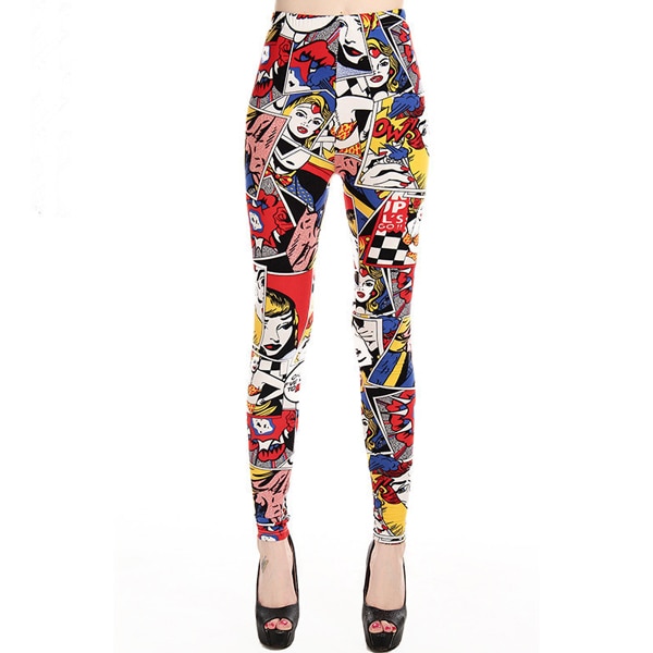 Women Leggings High Waist Cartoon Comic Beauty Print Trousers Soft Female Casual Elastic Pant